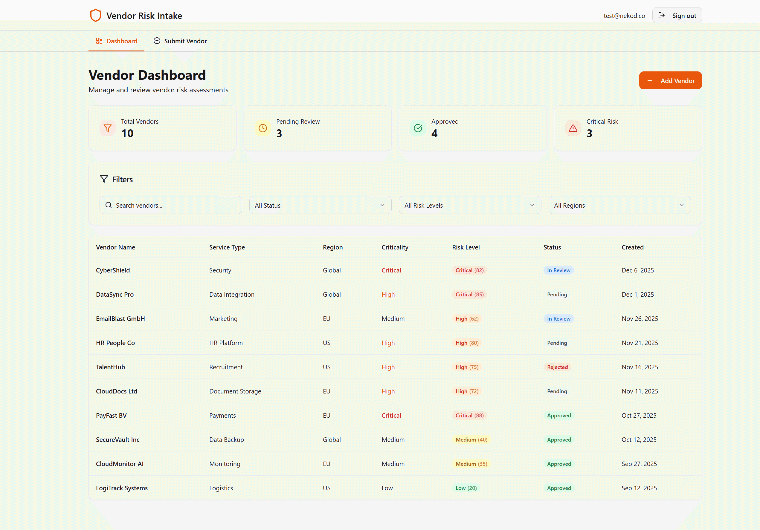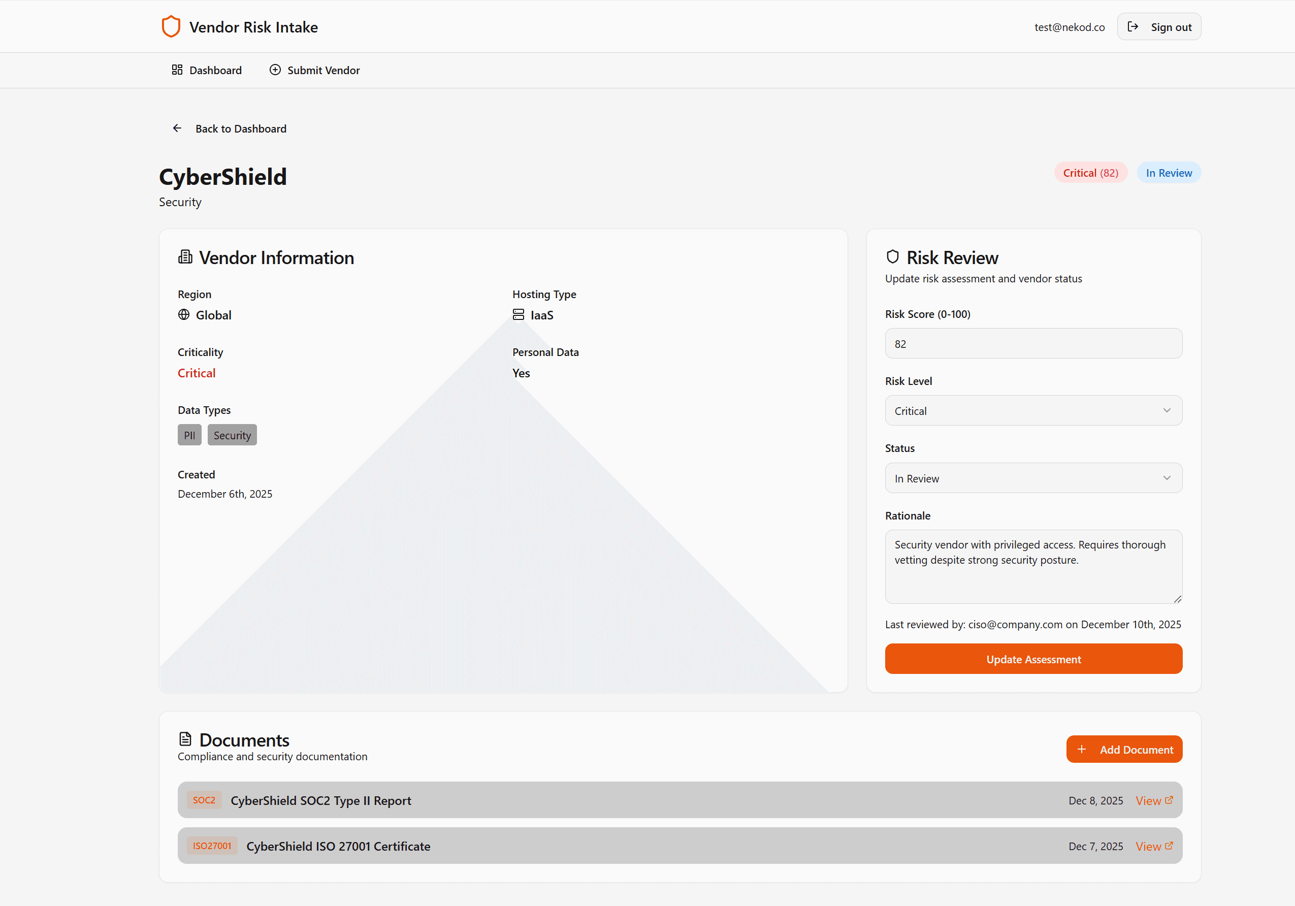 The solution transformed manual vendor management into a scalable digital workflow. Compliance teams gained real-time visibility into vendor risk. Auditors received instant access to documentation. Leadership could make data-driven decisions about third-party relationships. Most importantly, the organization reduced compliance exposure and demonstrated systematic vendor risk management